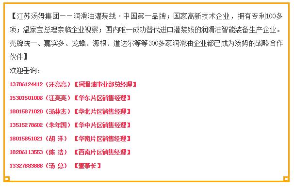 江蘇湯姆集團代表在介紹公司潤滑油灌裝線