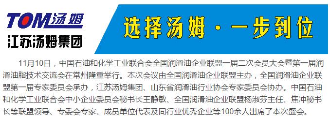 全國潤滑油企業聯盟一屆二次會員大會暨第一屆潤滑油脂技術交流會在江蘇湯姆集團順利召開