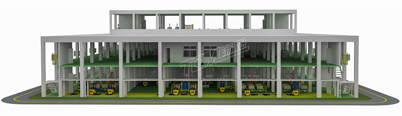 4、車間后道分裝:局部二層。二層負責投放流水線所需耗材(瓶子、蓋子、桶、紙箱等),統一投放,統一管理。