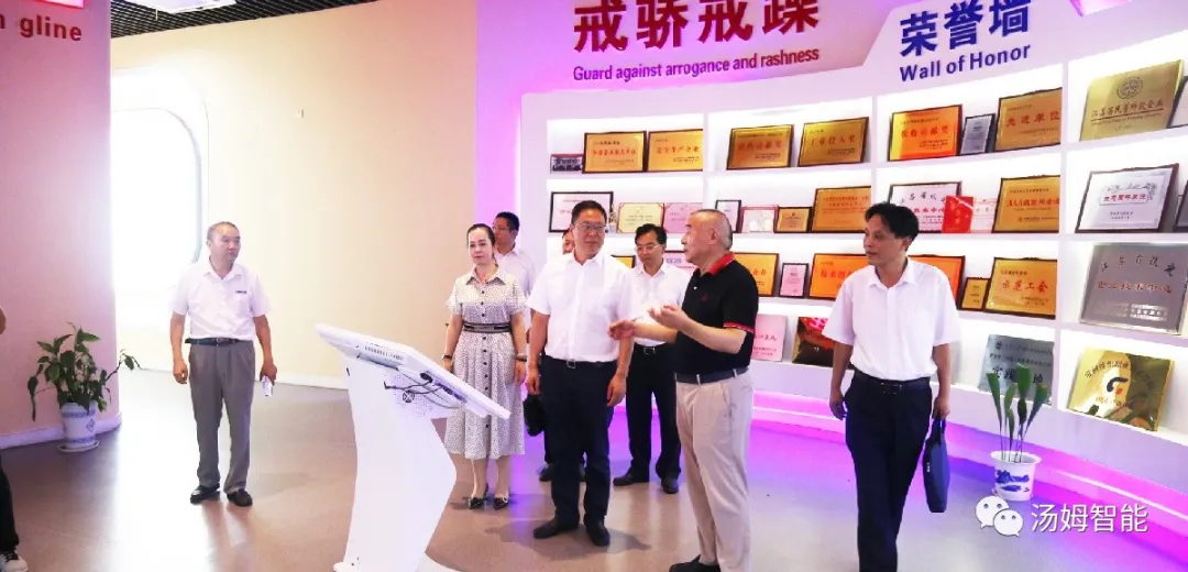等領(lǐng)導(dǎo)一行蒞臨江蘇湯姆集團(tuán)視察指導(dǎo)工作,江蘇湯姆集團(tuán)董事長(zhǎng)湯建華,湯姆森總經(jīng)理王芳熱情接待并全程陪同,參觀了湯姆展廳,