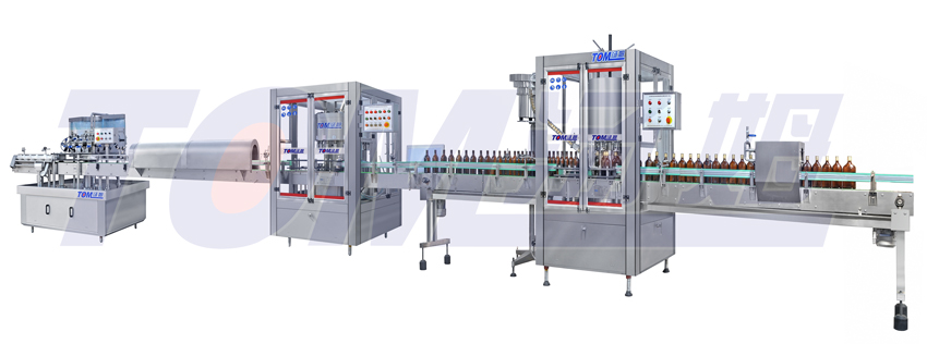 酒類、調味品回收瓶灌裝、壓(旋、扎)蓋,貼標工作流水線