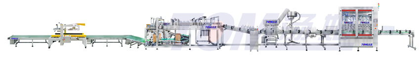 本線適用于食用油中小型企業(yè)的小包裝、中速包裝,生產線配置4-12頭伺服控制活塞式灌裝機、全自動壓蓋機、貼標機、開箱機、裝箱機和封箱機。